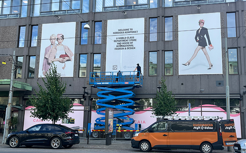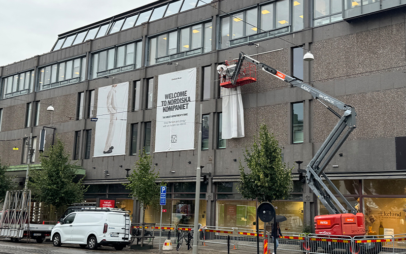 Vi är stolta och tacksamma över vårt avtal med NK. Som partner kommer Kungsbacka Skylt & Dekor att leverera och montera NK:s fasadvepor på löpande basis.