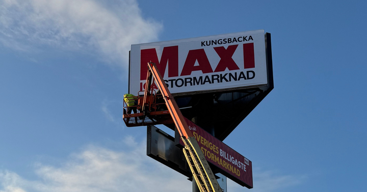 För ICA Maxi i Kungsbacka har vi nyligen genomfört service på en av deras pylonskyltar. Vi bytte trasiga transformatorer och levererade nya, fräscha fronter – allt för att skyltningen ska fortsätta representera varumärket på bästa sätt.